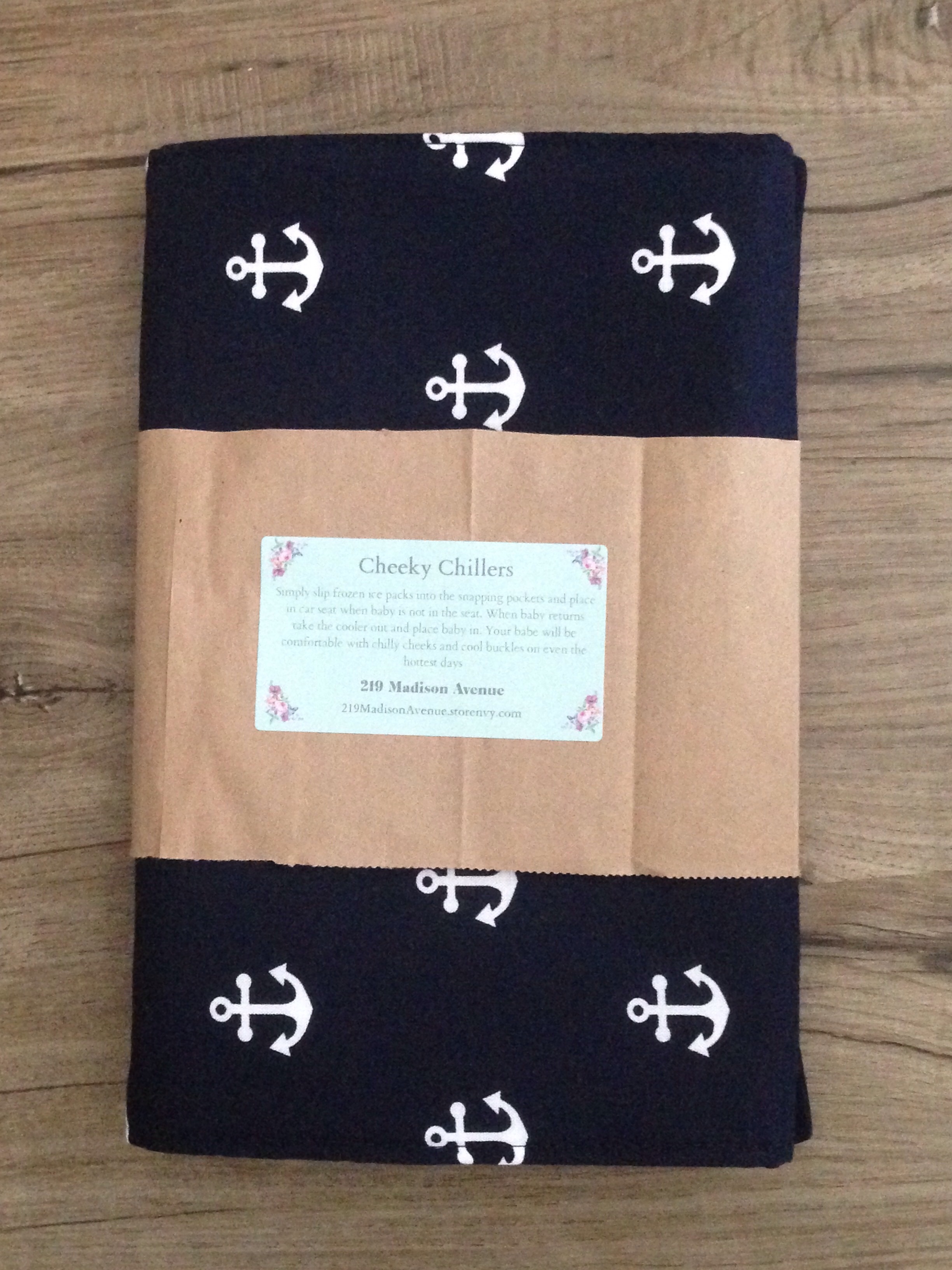 So what is a cheeky chiller? It is a car seat cooler created to do just that, chill your cheeks (and back). It is placed in your kiddos car seat (when they are not in them) to keep their seats cool so that when they get in to their seat you don't have to worry about burning buckles, hot buns and sweaty babies while you wait for the car to cool down. Simply slide frozen ice packs into the three snapping pockets and lay them pack side down into their seat. When you return to the car, take the cooler out and put your babe in. The insulated layer will keep the chiller cool up to 8 hours. You can use them year after year and are good for infant and toddler seats. They have become my go to baby shower gift all year round! (Ice packs not included)